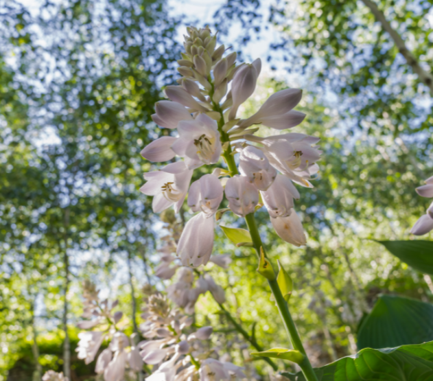 - 하얀 자작나무와 봄꽃이 어우러진 독특한 풍경